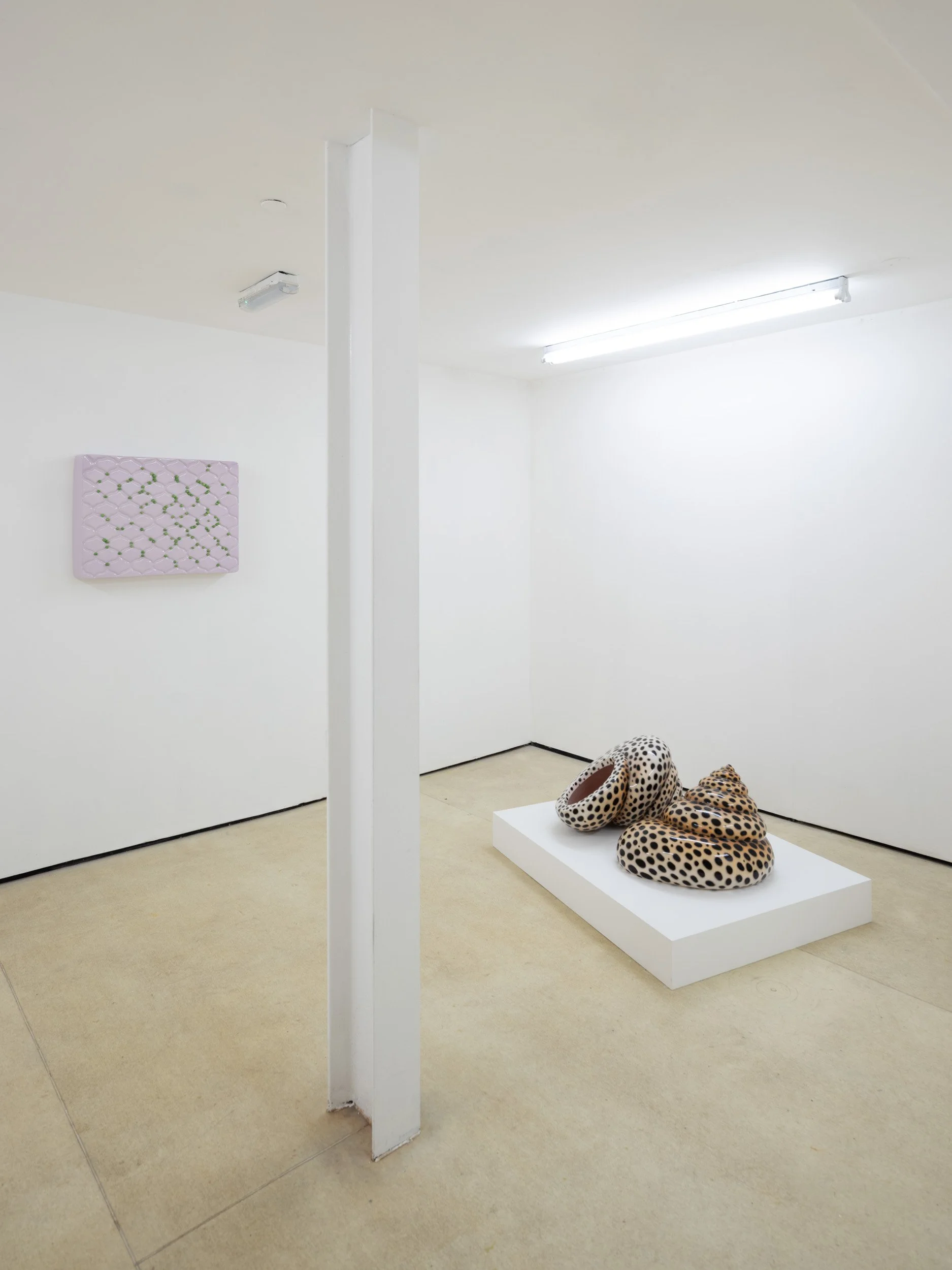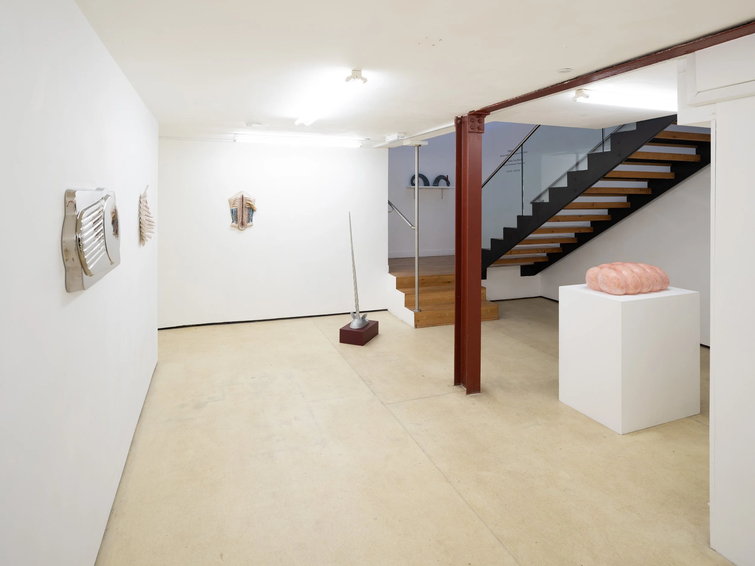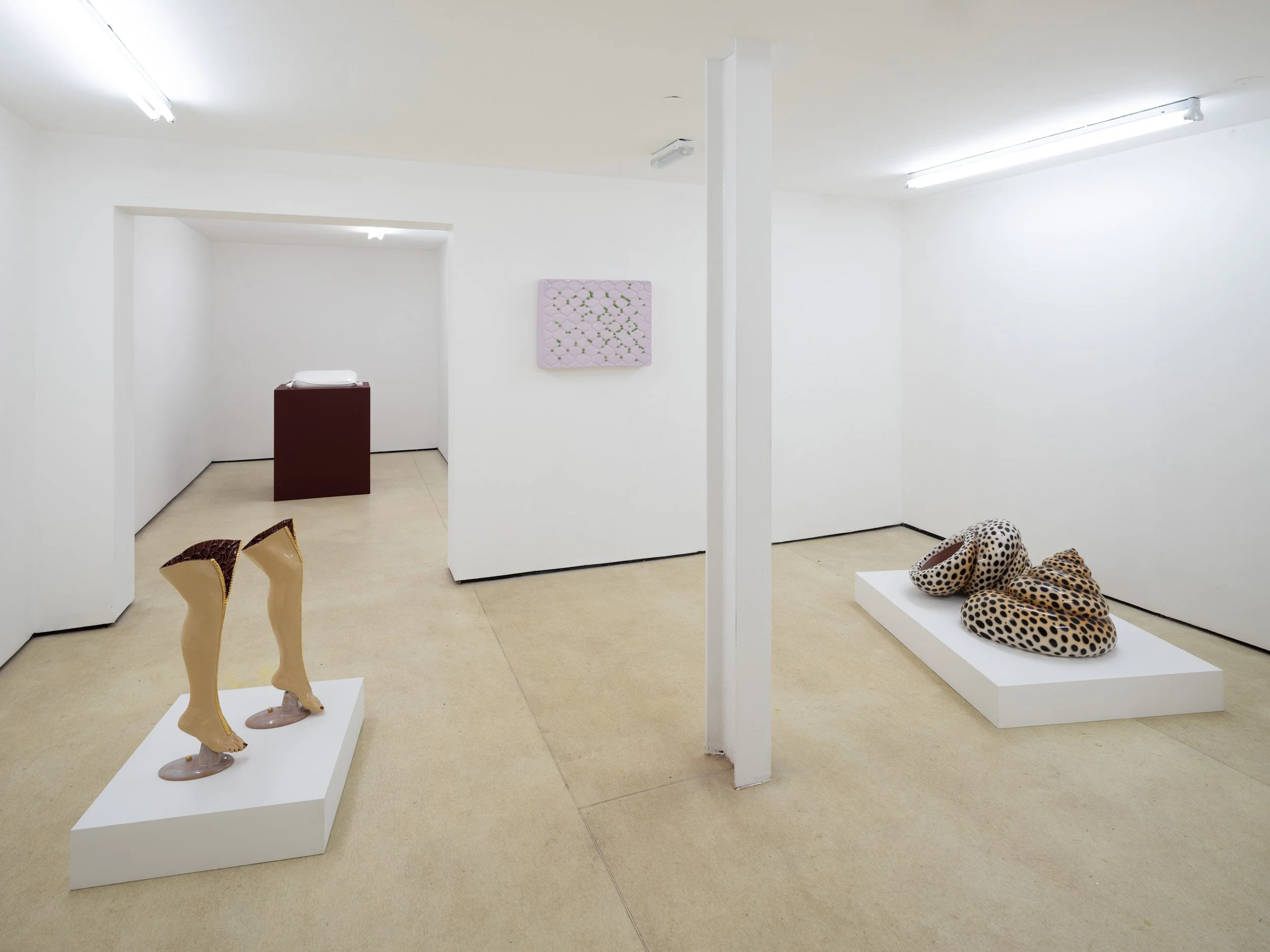 In Pillow Talk Paloma Proudfoot and Nicolas Deshayes present a conversation of new and recent sculpture in ceramic and cast metal. Presented in the crypt-like exhibition space of Quench, the pieces come together as a collection of effigies, mementos, anatomical models or reliquaries.