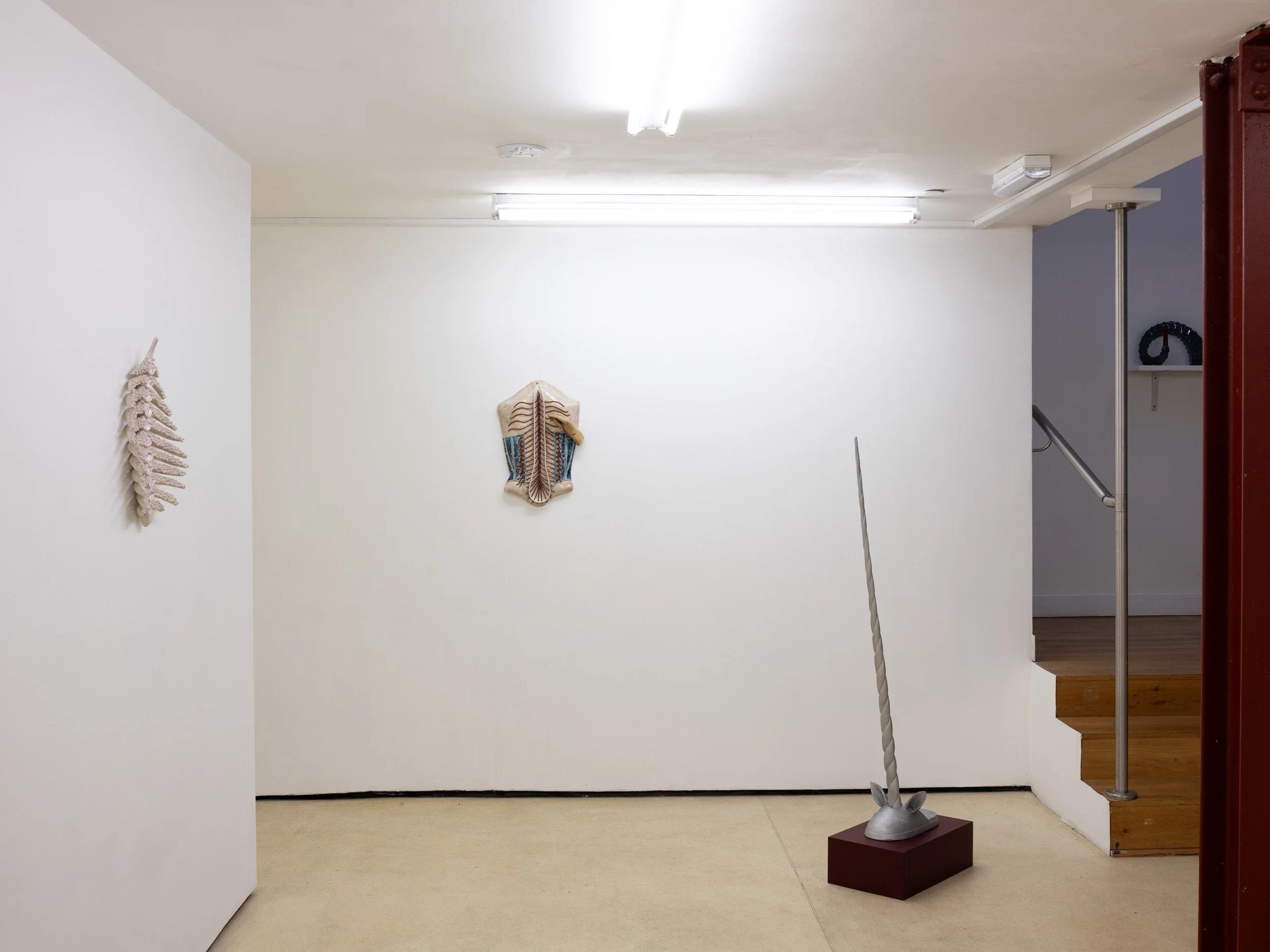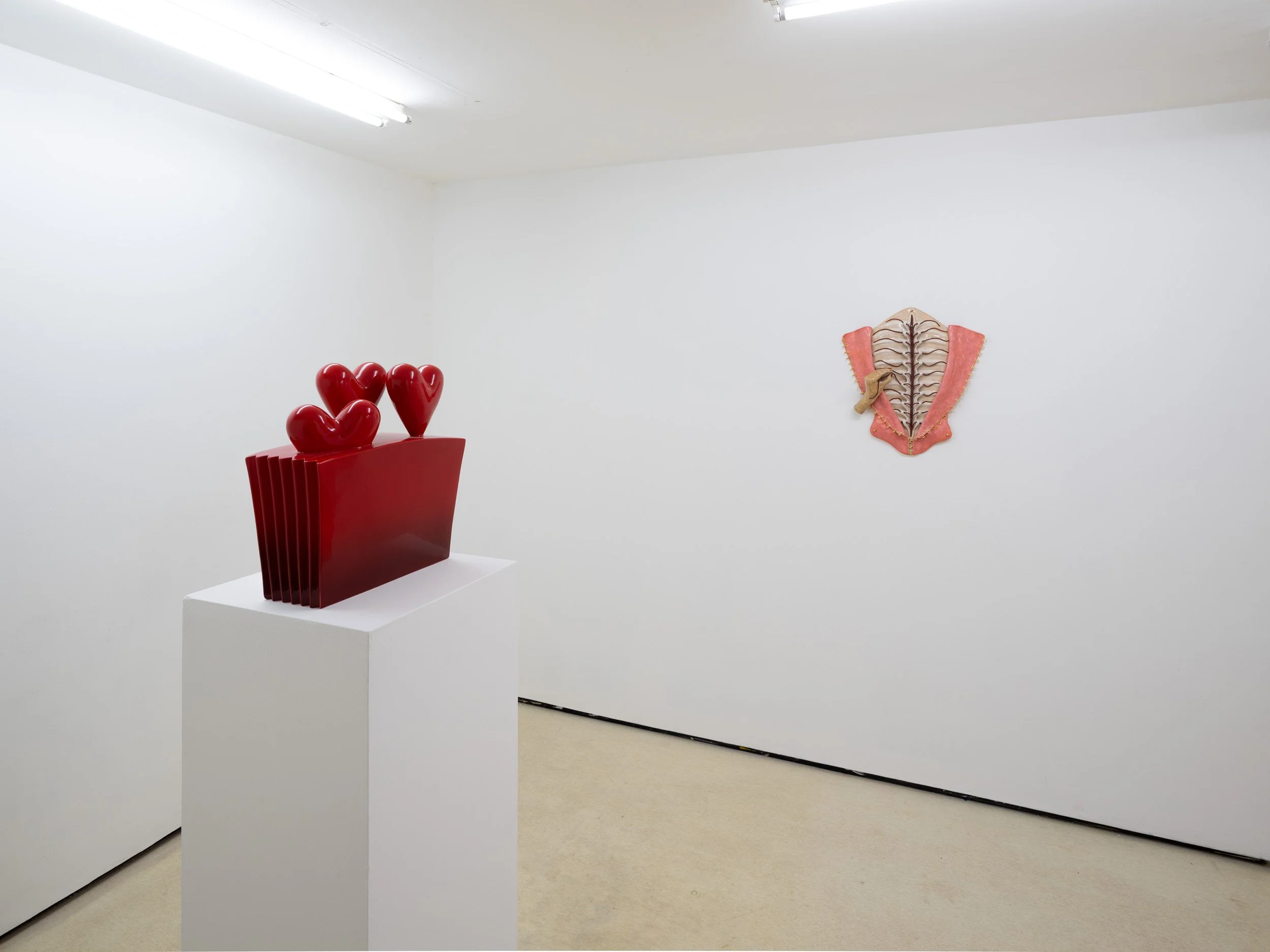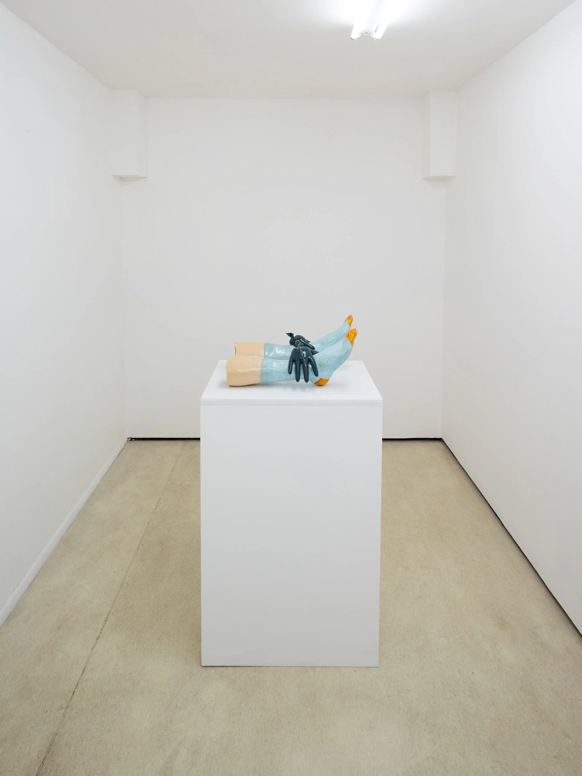 In Pillow Talk Paloma Proudfoot and Nicolas Deshayes present a conversation of new and recent sculpture in ceramic and cast metal. Presented in the crypt-like exhibition space of Quench, the pieces come together as a collection of effigies, mementos, anatomical models or reliquaries.