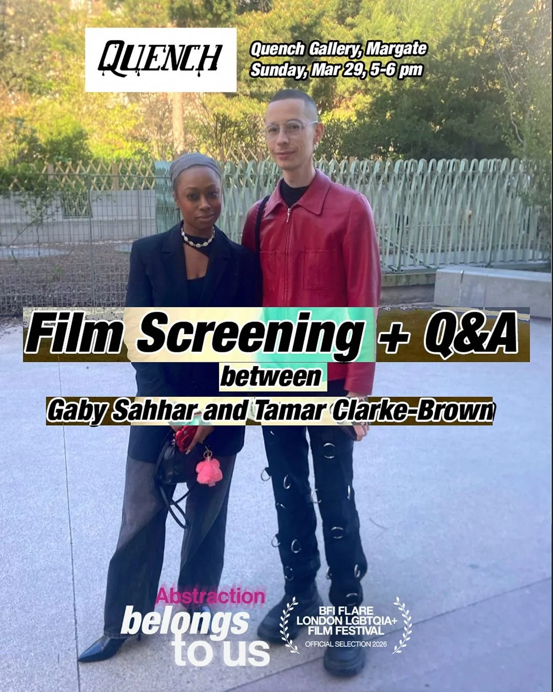 Abstraction Belongs To Us will screen during the day between 2-5pm (12 minutes long, open to all) followed by a discussion at 5pm. Seats for the discussion will be limited so booking is essential. Quench screening room is in the basement level accessible only by a flight of stairs, if you have any access questions or needs please don't hesitate to contact us at quenchgallery@gmail.com